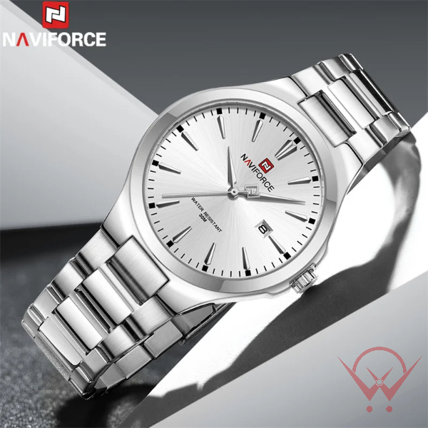 Product details for Naviforce 9214 Steel/White Wrist Watch