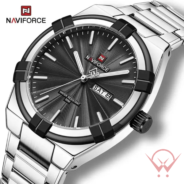 Product details for Naviforce 9218 Steel/Black Wrist Watch