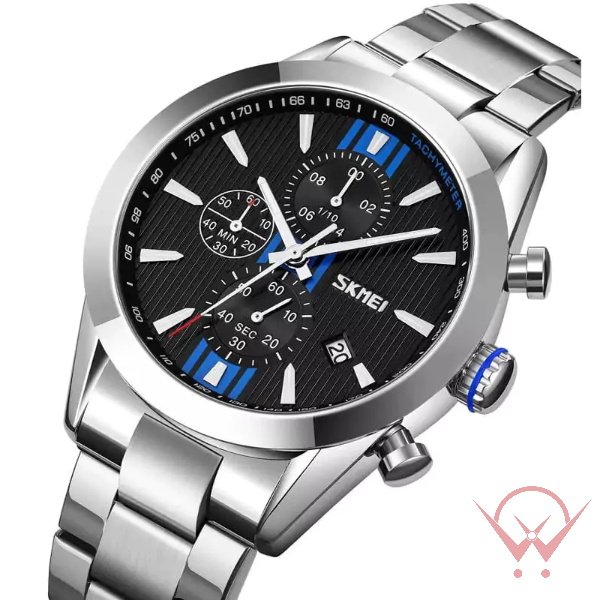 Product details for SKMEI 9302 Silver/Black/Blue Wrist Watch
